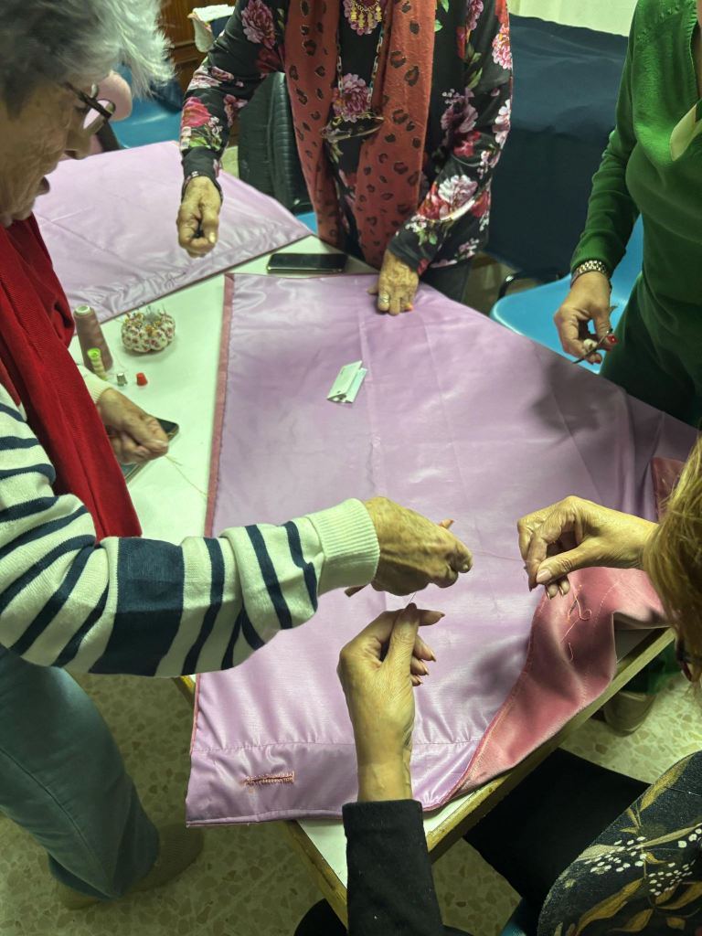 El Taller de Bordados de la Hermandad, bajo la dirección de Doña Antonia Gil Muñoz, se encuentra en la fase final de trabajo sobre el faldón trasero del paso de palio, que será estrenado, Dios mediante, el próximo Miércoles Santo.