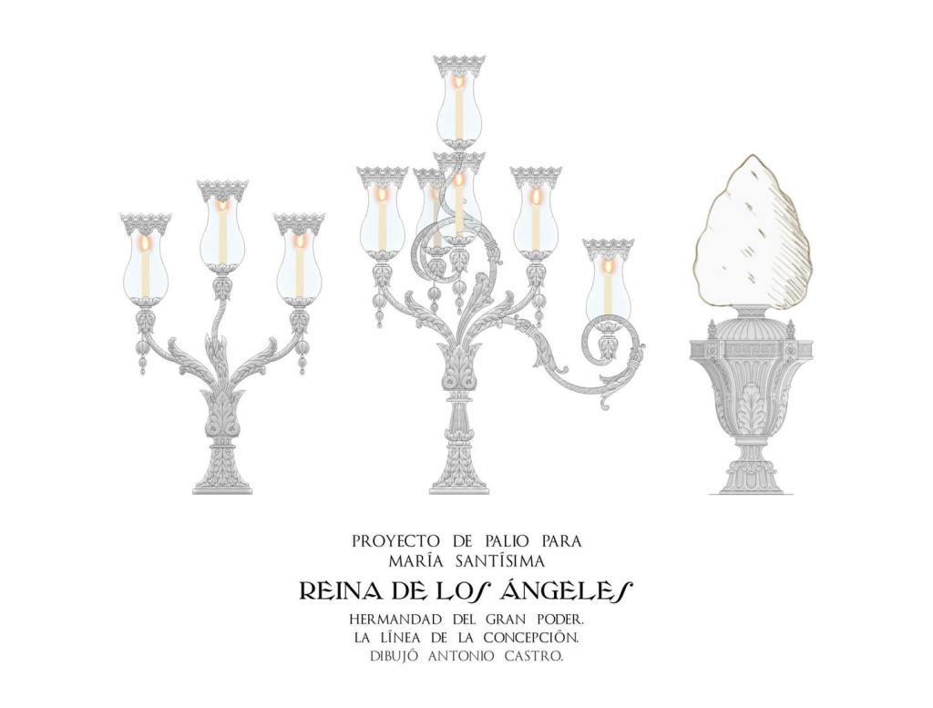 Los varales tendrán un diseño sencillo y neoclásico, mientras que los respiraderos mantendrán una sobriedad acorde con modelos antiguos, con molduras rectas y motivos vegetales. Las jarras seguirán un estilo de líneas limpias que armonizan con el conjunto general. En cuanto a la iluminación, el palio dispondrá de candelabros con tulipas guardabrisas para proteger las velas de las habituales inclemencias climáticas del Estrecho, garantizando que la imagen de la Virgen permanezca siempre visible y destacada.