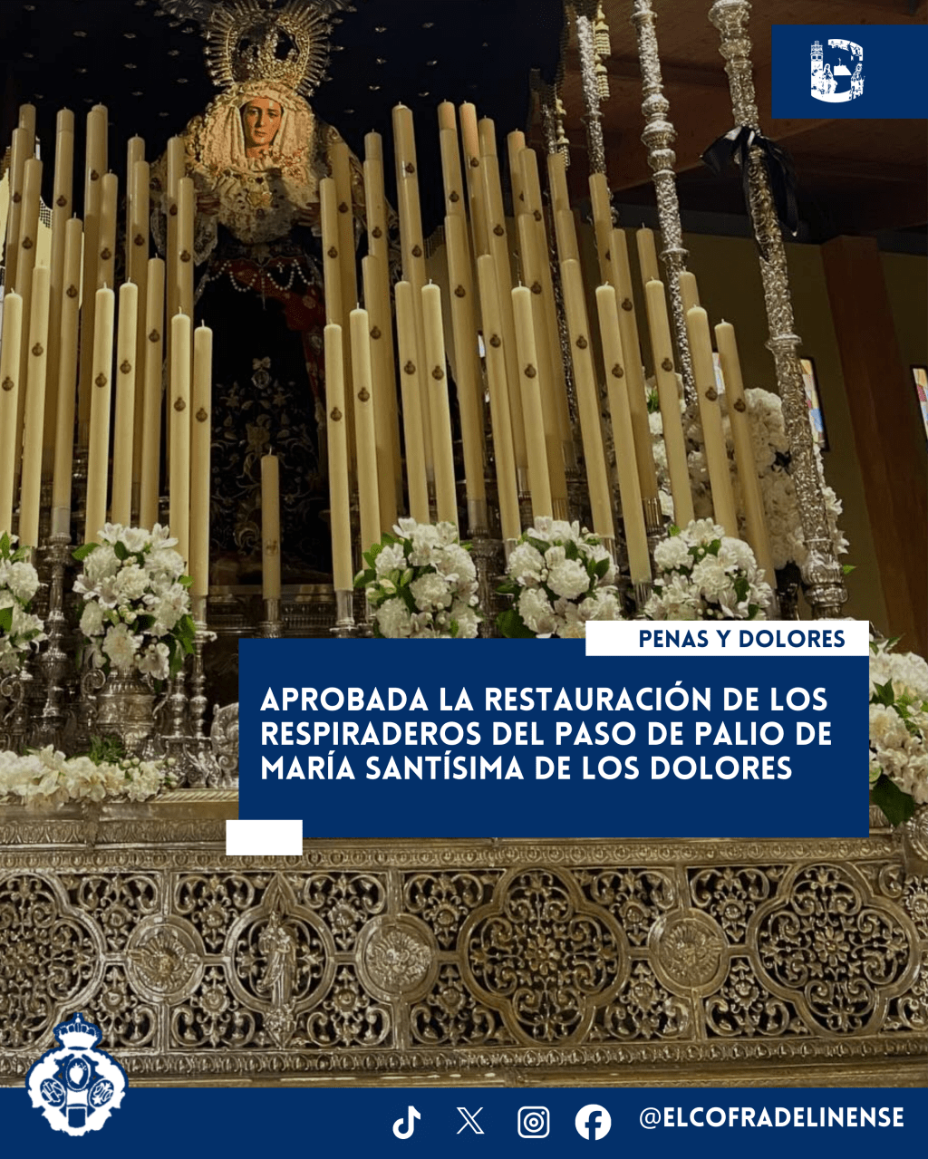 Que María Santísima de los Dolores guíe y bendiga este nuevo proyecto, fruto del esfuerzo y la unión de una Hermandad que continúa trabajando con ilusión y responsabilidad por la conservación de su legado.